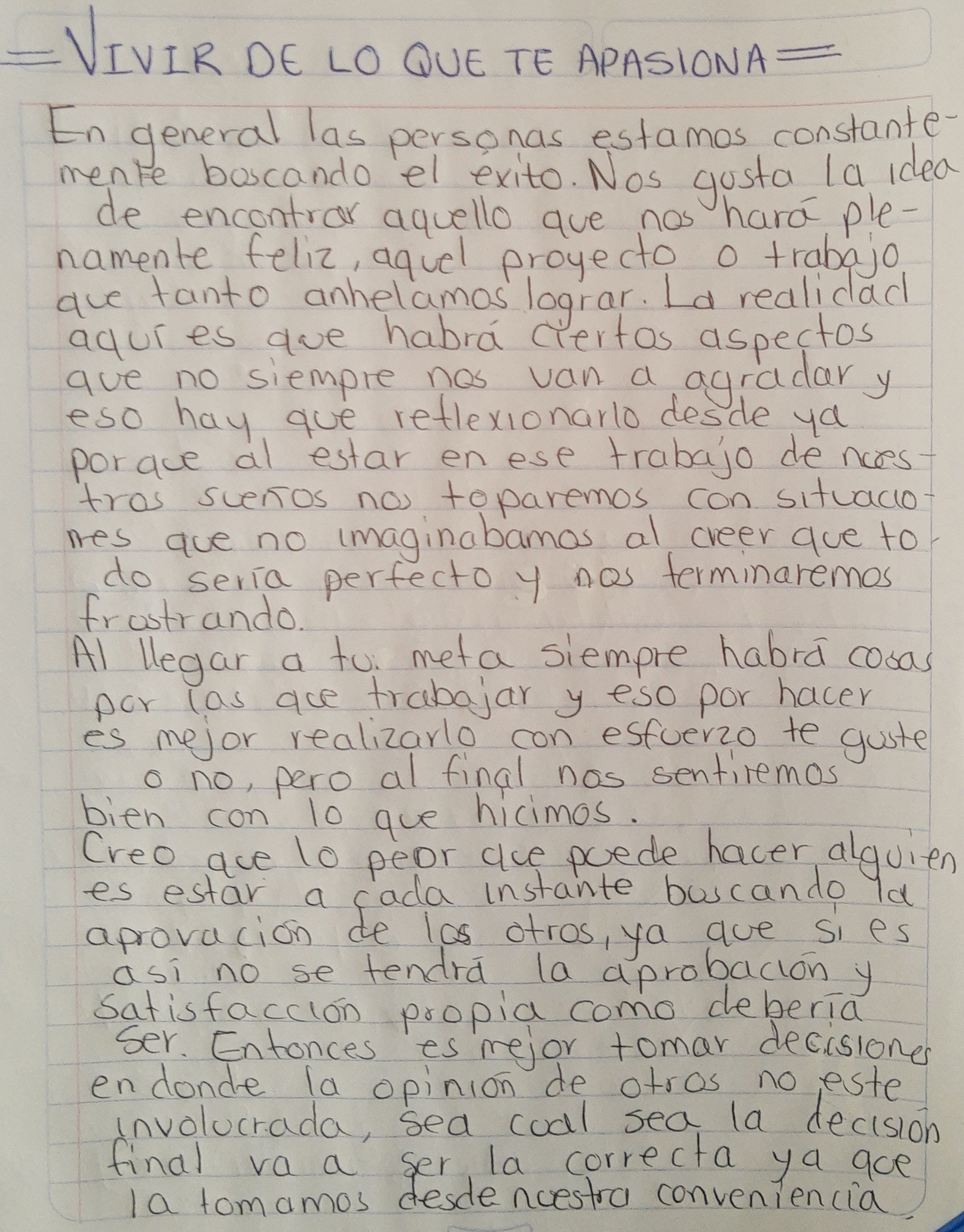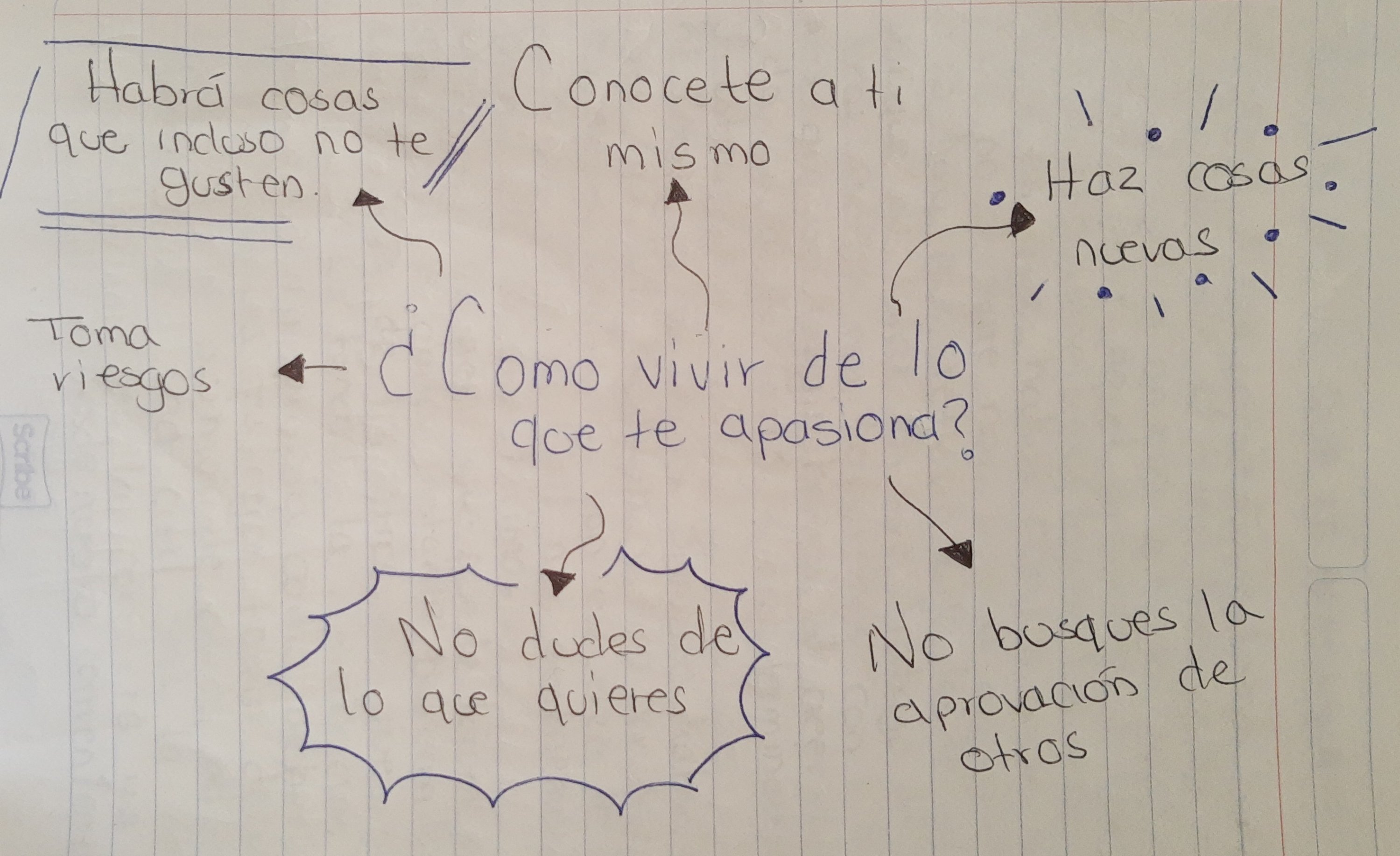 Vivir de lo que te apasiona no será siempre lo mejor como todos esperamos que sea, pues habrá cosas que no nos guste y está bien, es parte de trabajar. Lo que importa aquí es que estás haciendo algo en la vida. Hacer cosas nuevas te hará también conocer más de ti y descubrir que tienes otros gustos. Pienso que es bueno tomar riesgos sea cualquiera resultado, porque al final eso te hace crecer.